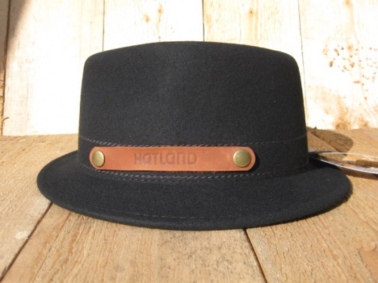 en een leren Hatland merkteken op de hoedenband.