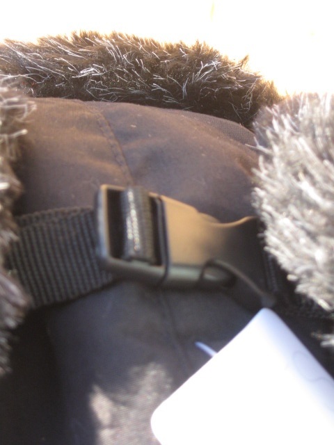 U klikt de oorflappen makkelijk vast met de zwarte gespsluiting.