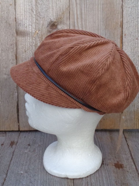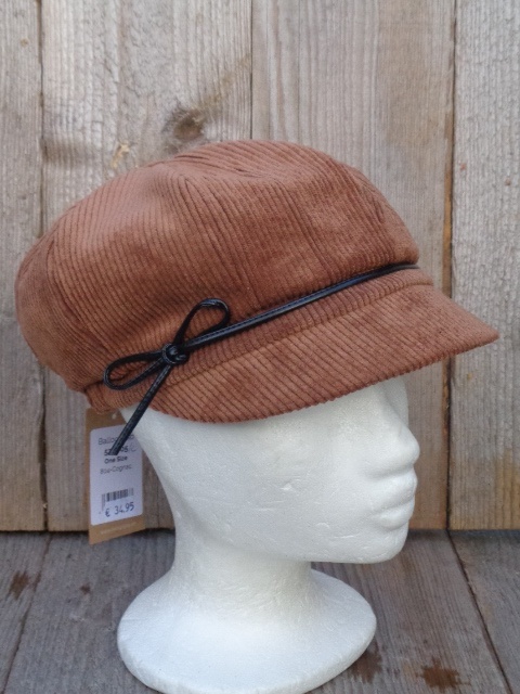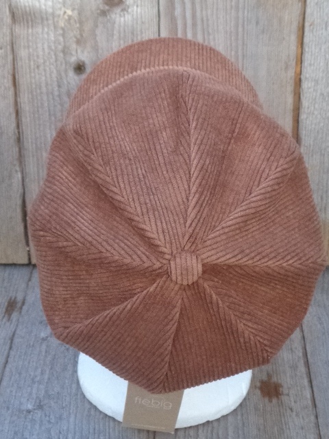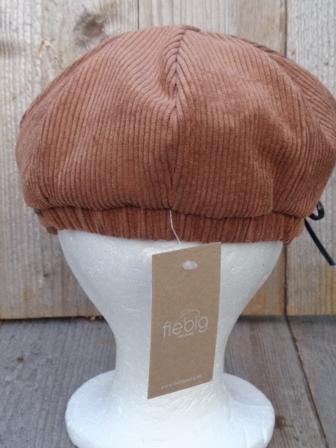 Mooie opvouwbare cognac kleurige corduroy pet van Fiebig.