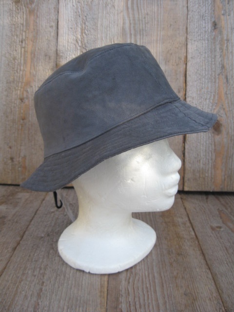De ene kant heeft gewaterde stof en als u hem omdraait heeft u een hoed die een suede look heeft.